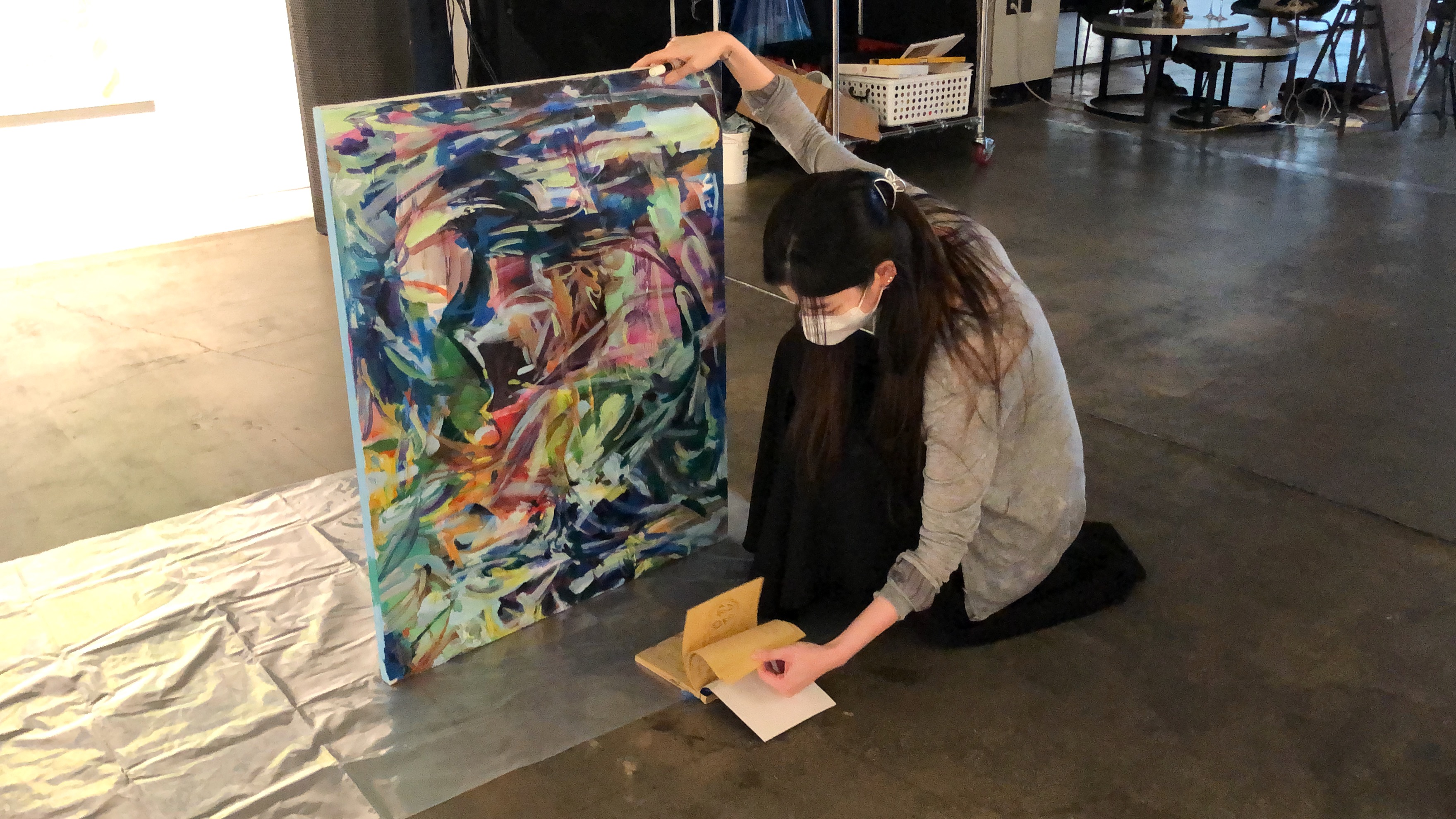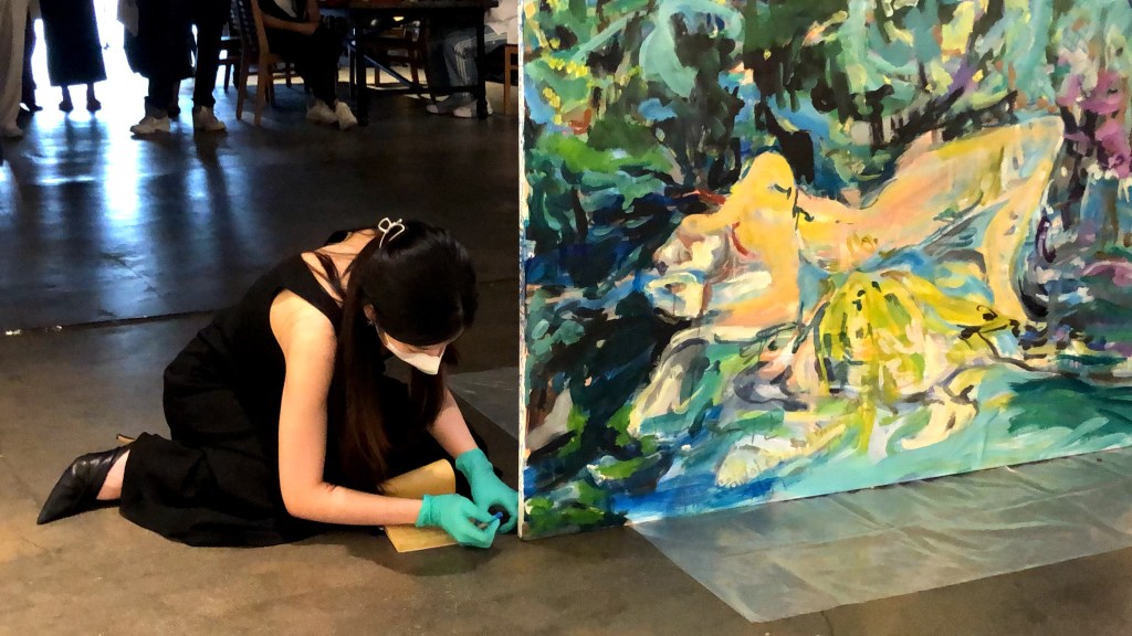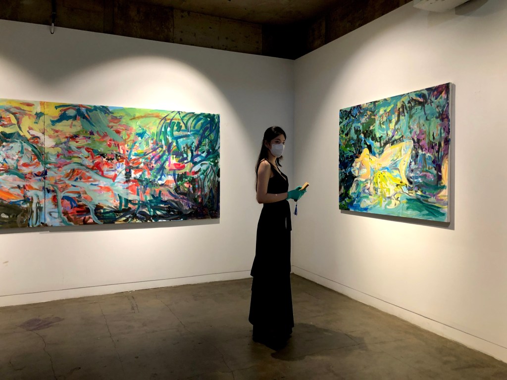 The exhibition later expanded to <Framed Superiority> (2022), where Lee collaborated with a singer and writer Jane Jang to deepen her narrative. There, they focused on sharing the process of making artworks and co-created paintings and sound artworks in a setting that reenacted their studios.