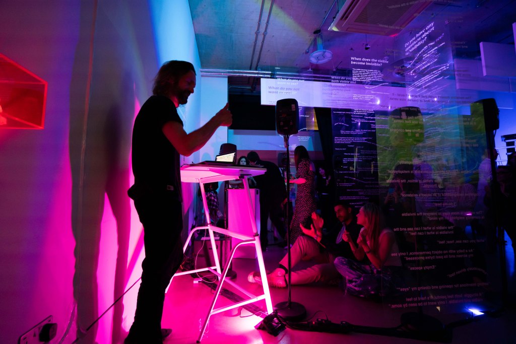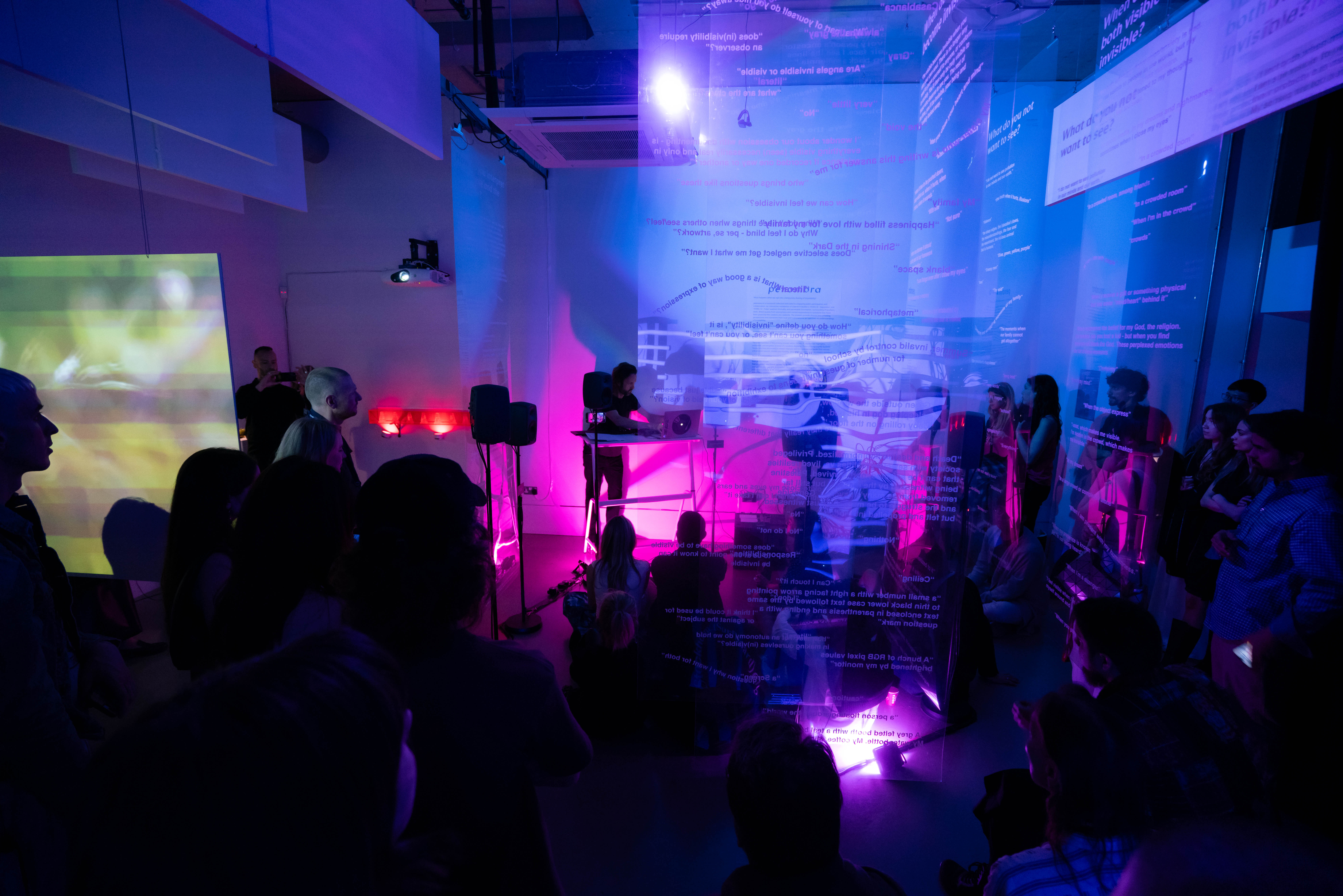 Entering the space, the public will sonically experience their place in a modern, transnational digital sonic realm where the sound world will evolve, triggered by the audience’s actions, and evoke related emotions (fear, hope, isolation, empathy, disorientation). It gives contemporary sonic experiences that reflect the confusion we feel in contemporary society, torn between identities and ideologies, as he takes samples from social uprisings and portrays those emotions with his sonic elements.