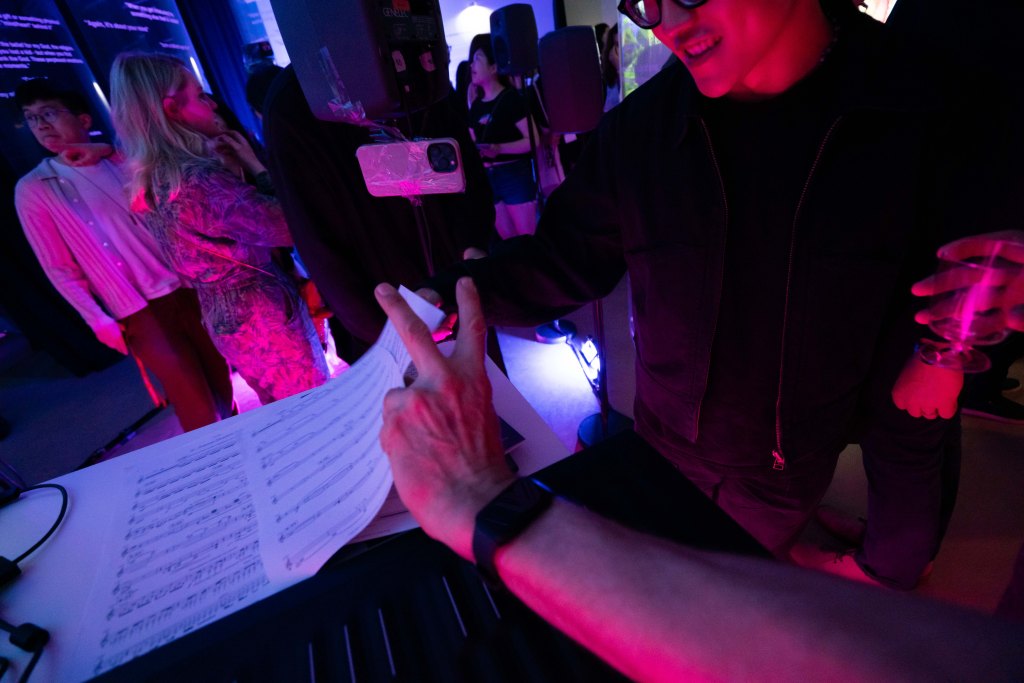 He will be performing live three times during the exhibition: the 19th of June, 5:10-5:20pm (VIP), 7:10-7:20pm (PV), and the 23rd of June, 1:10-1:20pm (Public, with a violinist Kasia Zimińska).
