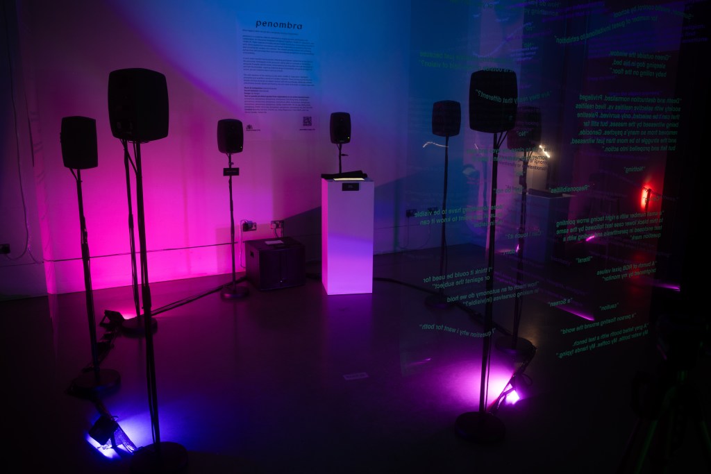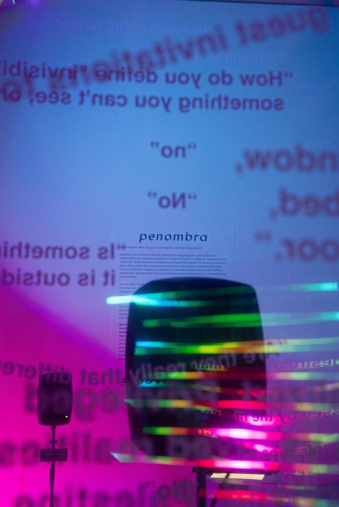 penombra enthusiastically explores and creates liminal spaces inside and outside institutional walls to expand boundaries and hierarchical confines, unfolding diverse perspectives and narratives that are both local and global. We embrace transnational mediation in order to explore what lies beyond visibilities. We query the advantages and disadvantages of occupying spaces of invisibility and visibility and are guided by our central question: what happens when we opt into a temporary sharing of invisibility?