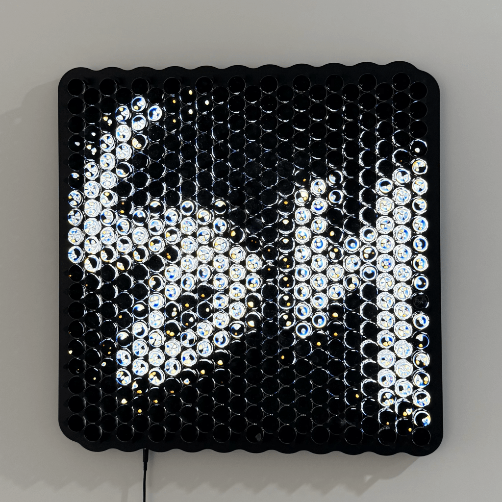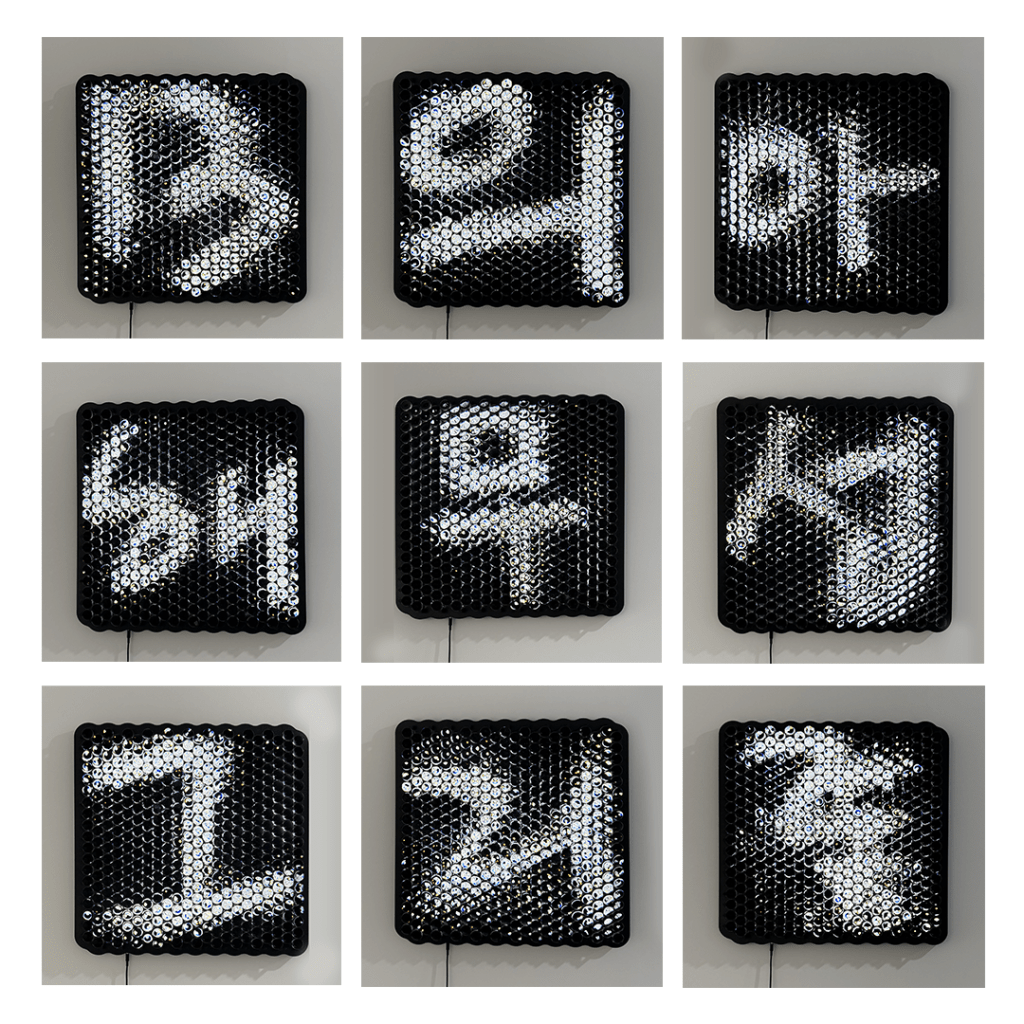 Within the bounded viewing zone, a single character is always visible. But as the viewer moves within a range of one to three meters, shifting up, down, left, or right, the characters morph smoothly from one to the next. This transformation is not random but follows the internal structure of the machine’s internal logic. The work connects a historically censored linguistic expression with the contemporary mechanisms of algorithmic language, staging a dialogue between human resistance and computational patterning.