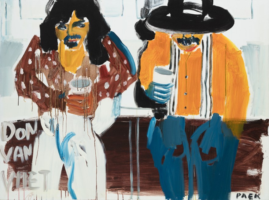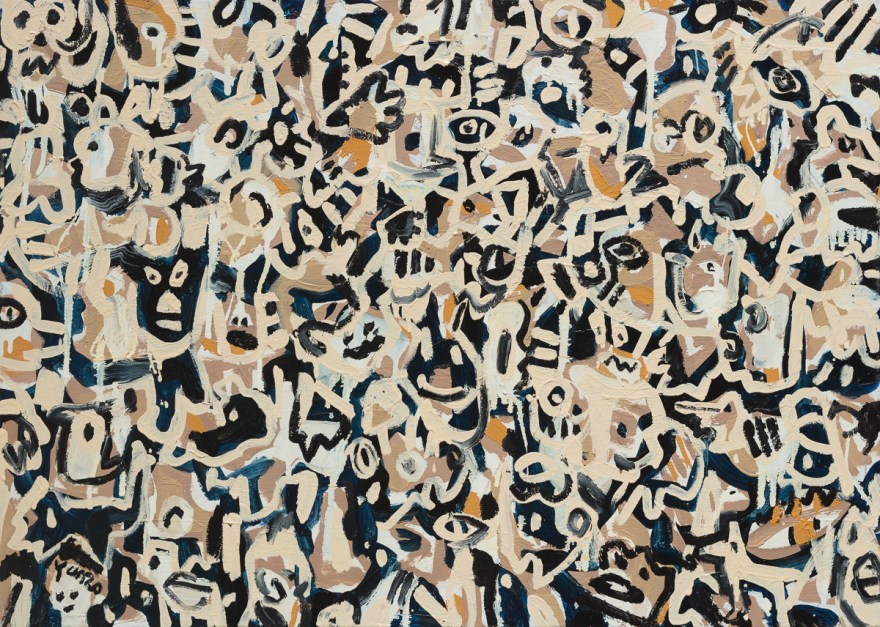 그렇게 성실히 쌓아가는 하루하루를 미끄럼틀처럼 쓸어내리듯, 백윤조 작가는 의식을 뛰어넘은 본능으로 레이어를 쌓아 올린다. 과감한 붓 터치와 형태들은 나선형의 사고를 꿰뚫듯 관통한다. 그 행군이 연이어 바글바글한 목소리들이 가득 찬다. 한쪽에서는 그녀의 소중한 사람들이, 한쪽에서는 배경에 들리던 목소리들이, 한쪽에서는 그녀의 기억들이 서로를 움켜줬다 비껴간다. 마주하는 상대와 환경에 따라 자유자재로 변하는 우리의 모습처럼 그녀의 개체들도 다채로운 표정을 자아낸다.