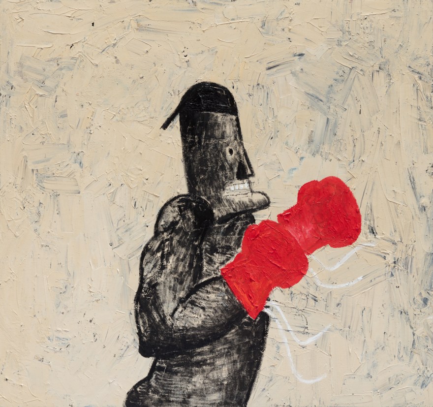 Among them, certain objects whimsically land in the center of the canvas. These figures take audacious steps through the background without looking for the destination, sometimes with hope, sometimes with nebulosity, as if it continues to mark the passing of time.